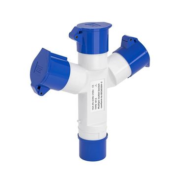 工業三通插座,適用於工地、臨時供電、工業設備分流使用。設計可同時連接三個工業插頭,有效提升現場供電靈活度,減少頻繁插拔主電源,適合多設備同步運作環境。