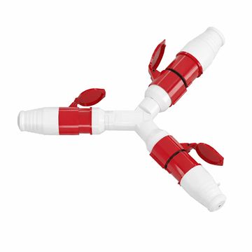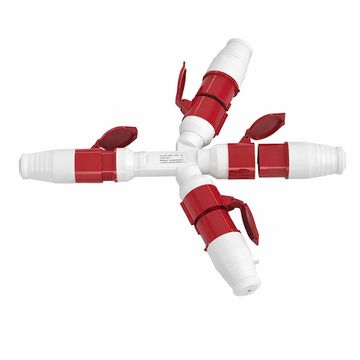 一進三出 3 芯工業插頭整套,專為工地臨時供電及多設備分流使用而設。透過單一電源輸入,同時分流至三個輸出端,提升現場用電靈活度及效率,減少頻繁更換或加接電源的需要。