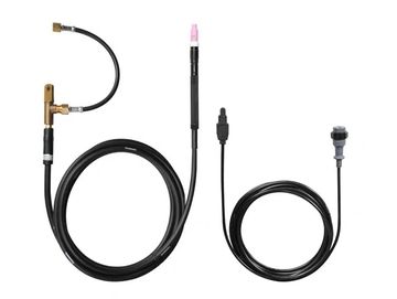 TIG 焊槍專用線組,適用於精細焊接工序。線材柔韌,氣體及電流傳導穩定,配合陶瓷噴嘴使用,適合對焊縫品質要求較高之工程及維修作業。